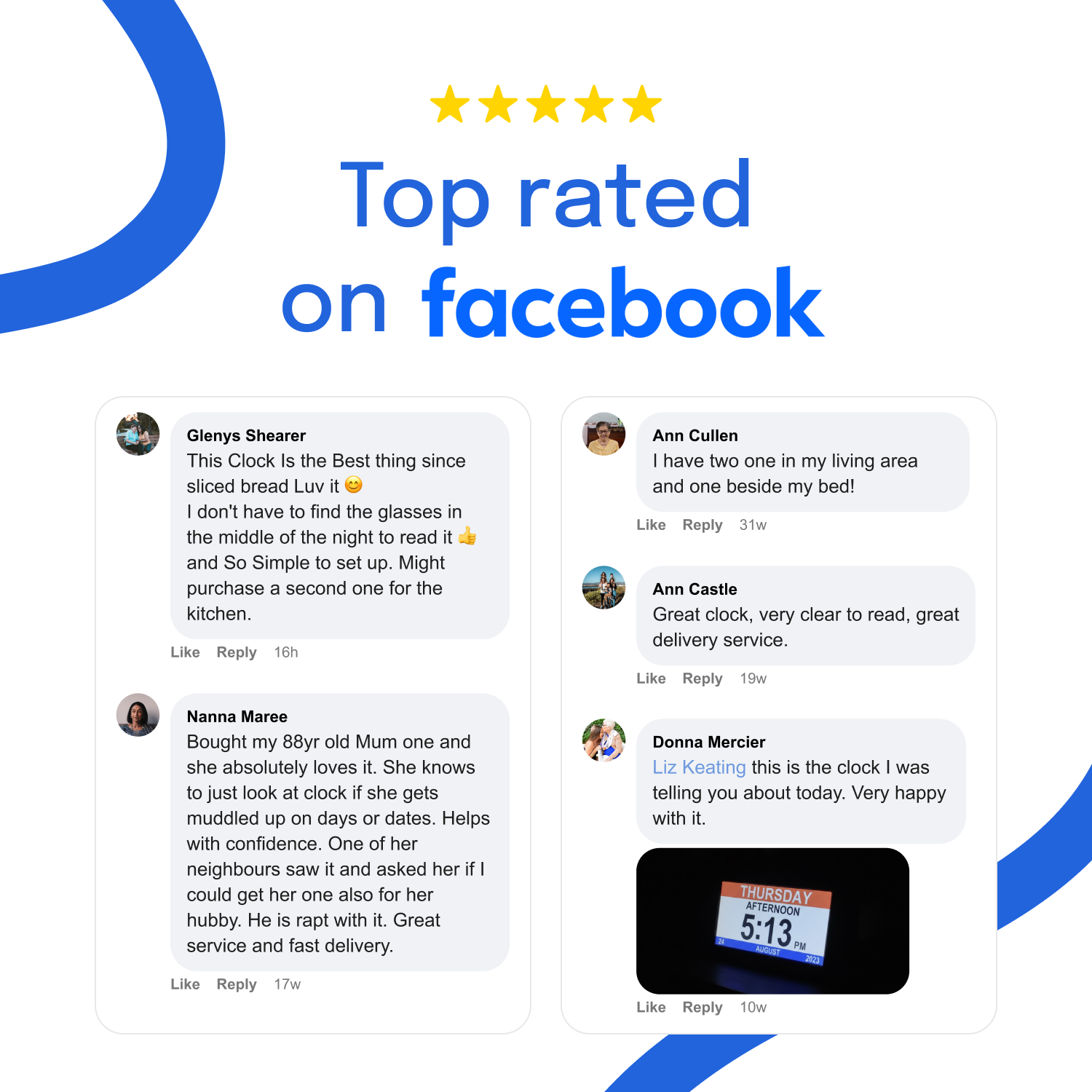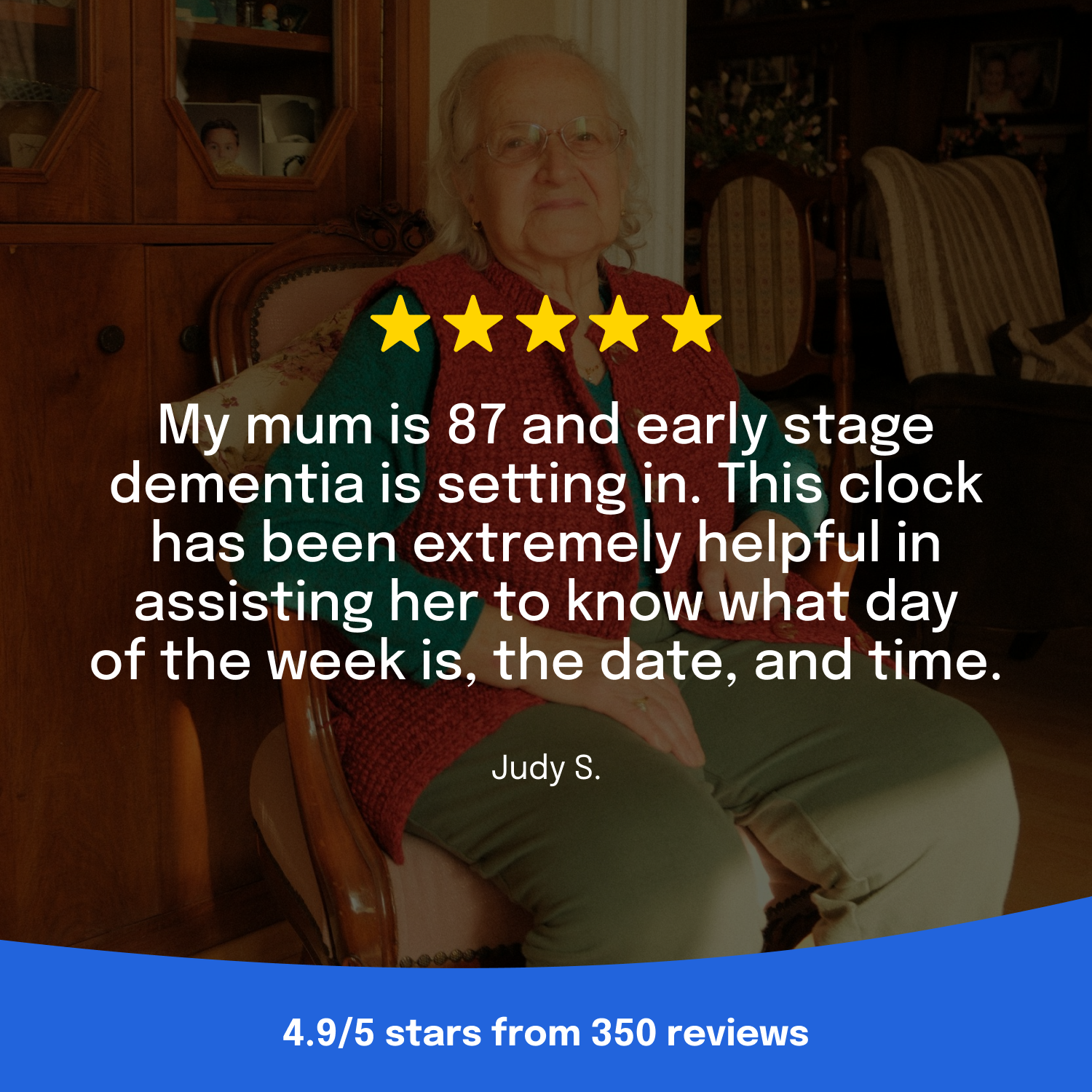 The XL, high contrast, no glare LED screen is easy to read. It displays the time, date, day of the week, time of the day and reminders. The screen can display an analog or digital clock. The brightness can be adjusted and automatically dimmed at night time, perfect for the bedroom. No more stressing about remembering to send reminders. No more frustration from your loved one about you reminding them.